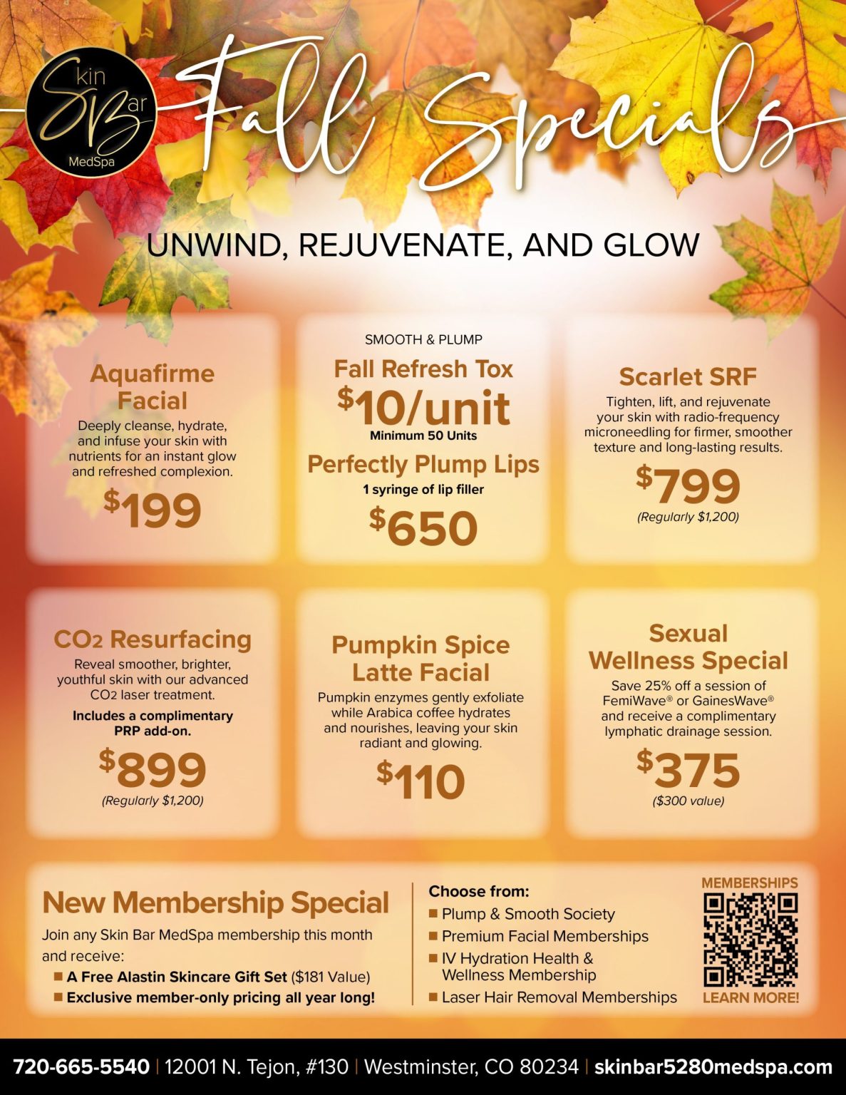 Skin Bar MedSpaEvents & Specials October 2025 Specials Skin Bar MedSpa offers flexible payment plans to help clients access treatments more affordably. Their financing options include easy monthly payments tailored to your budget, ensuring accessibility for beauty and wellness treatments. Apply For FINANCING TODAY!