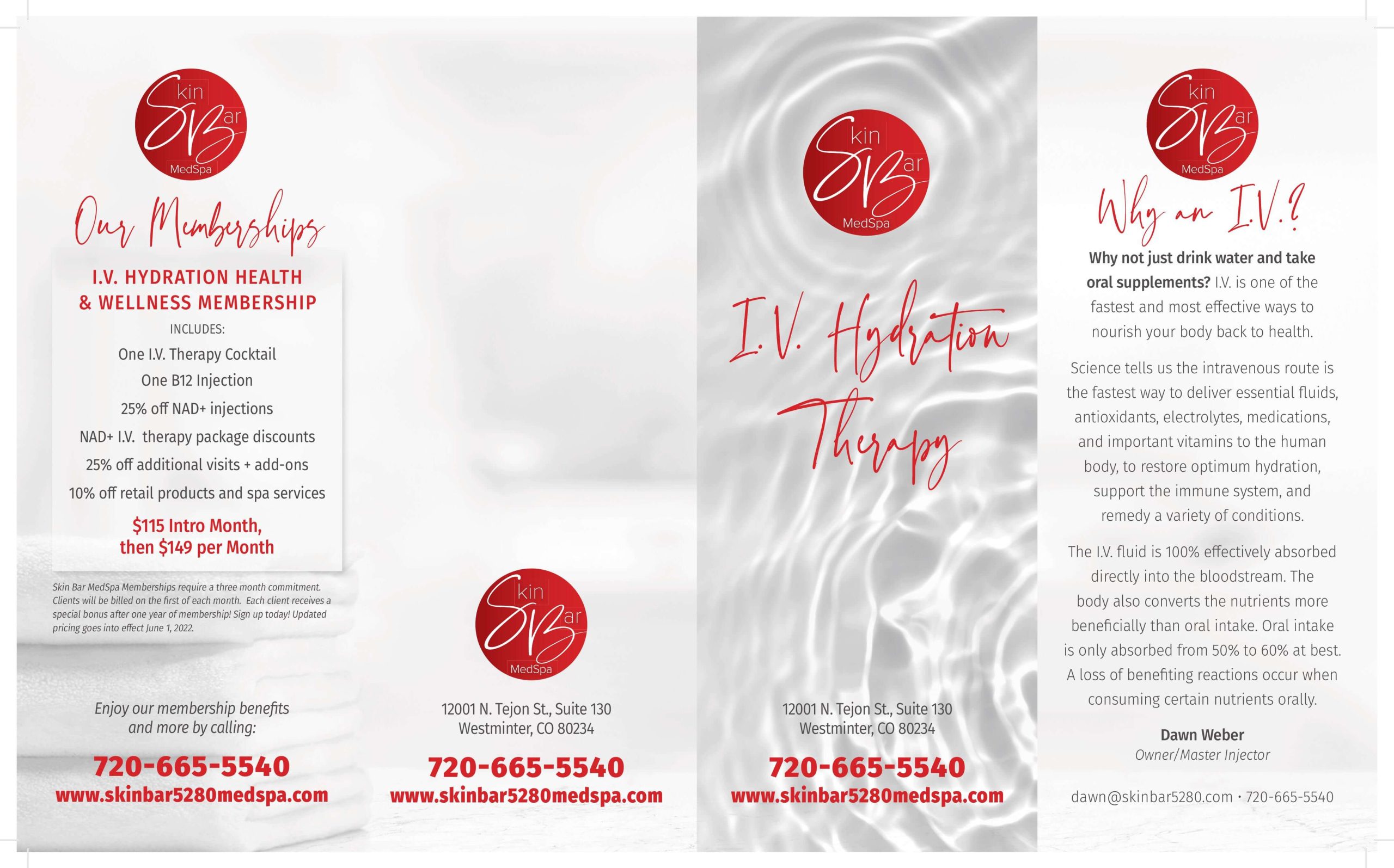 Contact Skin Bar Medspa in Westminster, CO, to learn more about our IV therapy and hydration options. Our highly trained and experienced team is committed to providing the highest level of care to have you feeling your best and living life to the fullest.